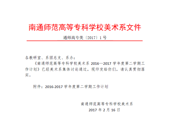 美术系2016―2017学年度第二学期工作计划