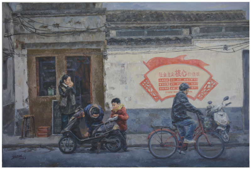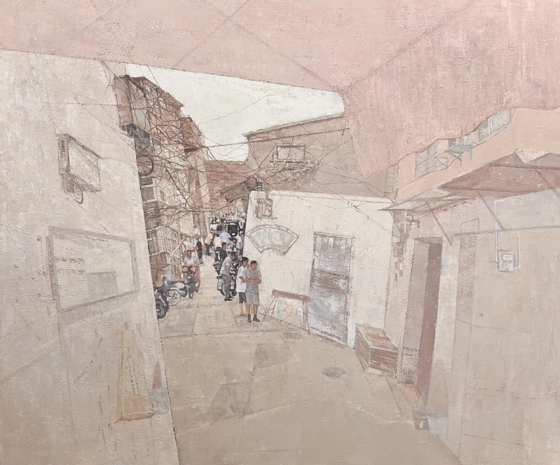 黄斌斌 油画《老城小铺》 120cm×180cm