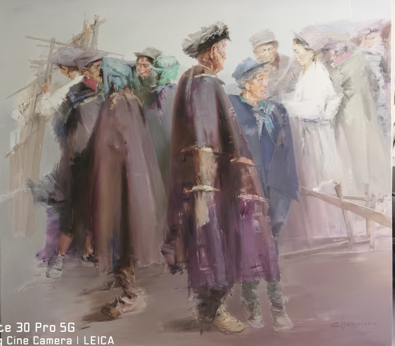陈彤 油画《赶集》 180cm×180cm