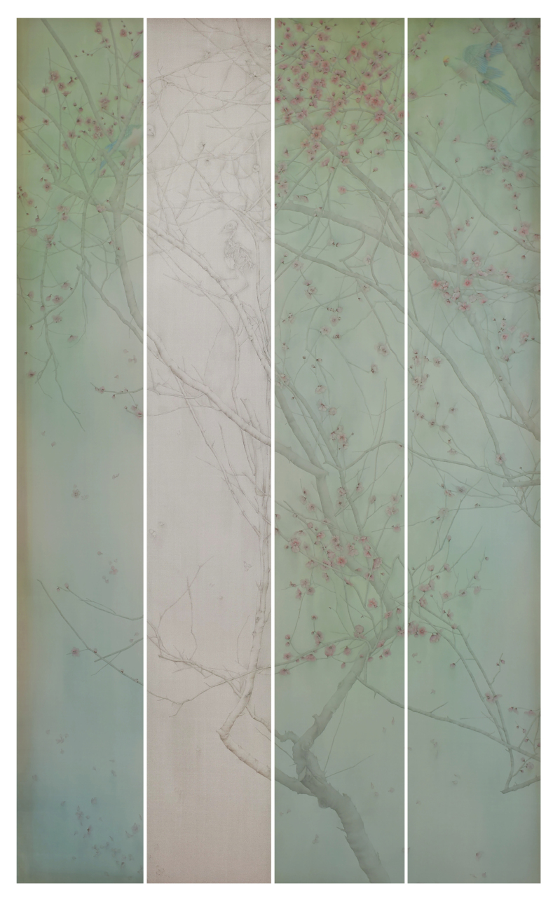 孙楠 工笔花鸟《昨宵入梦花光寒》 210cm×30cm×4