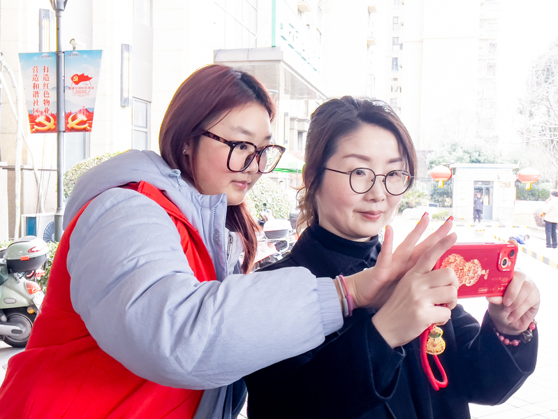 讲座结束后,社区居民积极运用所学摄影技巧,将镜头对准社区内磨刀、理发、量血压、测血糖等公益服务,定格下一个个温暖瞬间。党员教师和团员青年穿梭在人群中,提供一对一指导,耐心讲解拍摄角度、光线运用、创意构思等技巧,现场洋溢着浓厚的学习氛围。