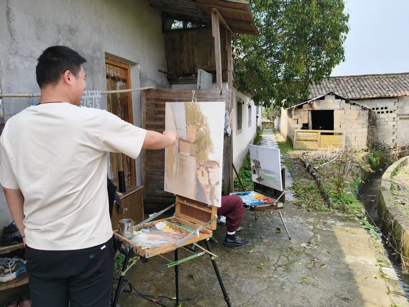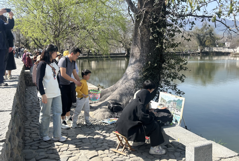 宏村作为世界文化遗产,其粉墙黛瓦的明清古建筑群与村落周边潋滟的湖光山色为师生们提供了鲜活的写生素材。美术教育专业员工以水粉、速写等传统媒介捕捉古村及周边风貌;艺术设计专业员工结合数字绘画等现代手段,探索徽州元素在设计中的转化应用。艺术设计24专班长章南武感叹道:“徽派建筑中空间交错的形式美为我提供了创作新思路。美不再是书本上的空洞理论,而是真实、真切的生命体验。”