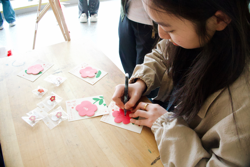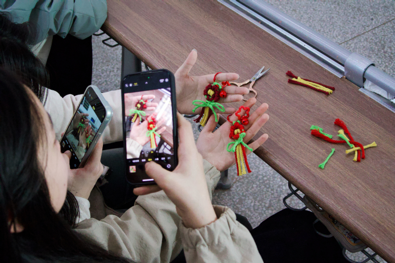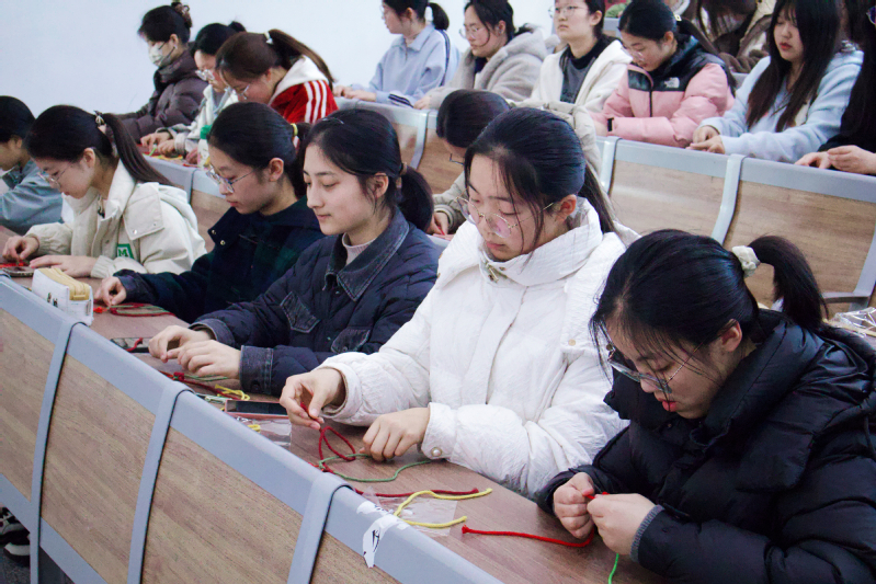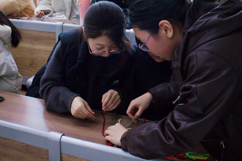 活动现场,DIY社社长茅程倩化身“教学主播”,从基础结法到造型设计,层层拆解技巧,让零基础参与者也能轻松上手。同学们围坐一堂,指尖翻飞间,一朵朵象征感恩与希望的小红花逐渐成型。有同学笑言:“原来雷锋精神不仅能‘讲’出来,还能‘编’出来!”