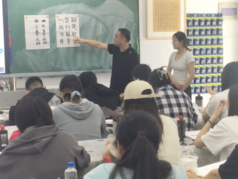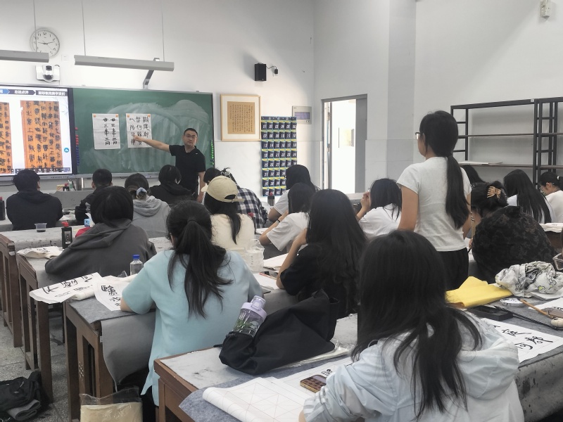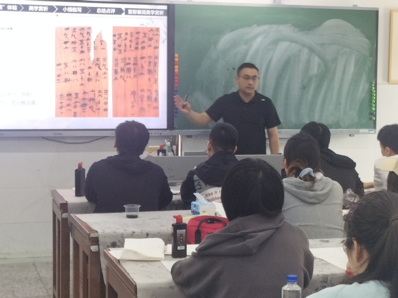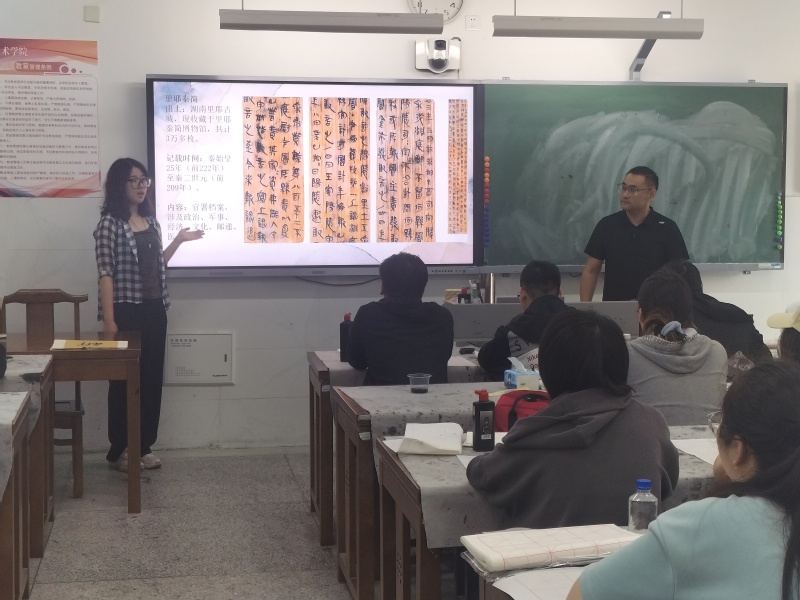 2025年5月30日上午第二节课,美术教育系刘琰在美术231班开设主题为“与秦史对话——里耶秦简的美学赏析”的每月一课。系部负责人及书法课程组老师一起参加了听课活动。