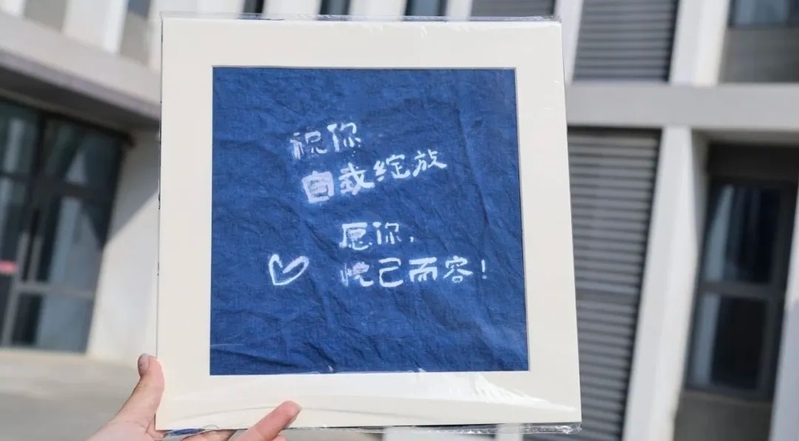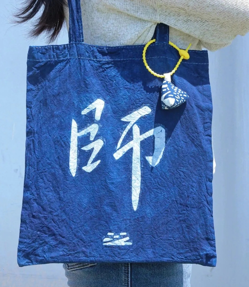 校庆日“蓝不住的精彩”设计主题文创,“师”字蓝印花布包,展现地域文化与校园精神的共生共荣。