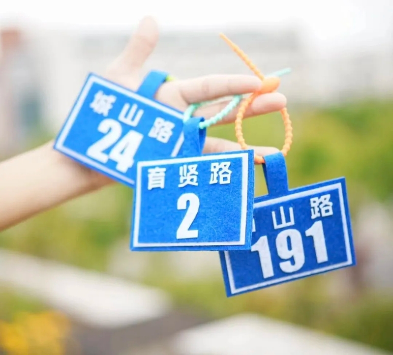 毕业季“布说再见”情感工程创作校园路牌挂件传递母校关怀。