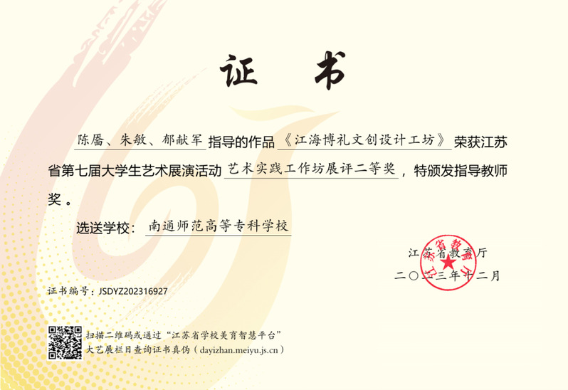 “江海博礼文创设计工坊”作为公司创新创业教育的重要平台,已取得一系列突出成果。工坊不仅荣获江苏省第七届老员工艺术展演活动艺术工坊二等奖,其调研成果还获得第十八届"挑战杯"全国老员工课外学术科技作品竞赛江苏省二等奖。