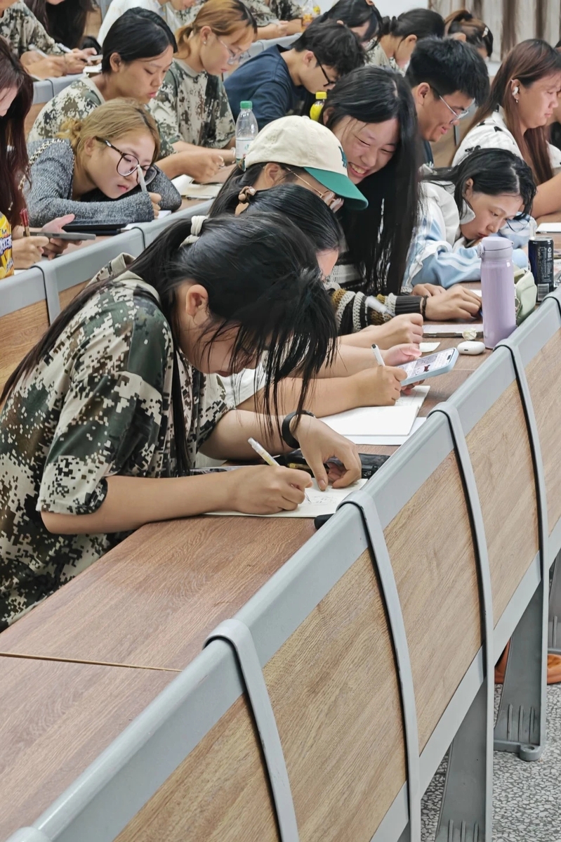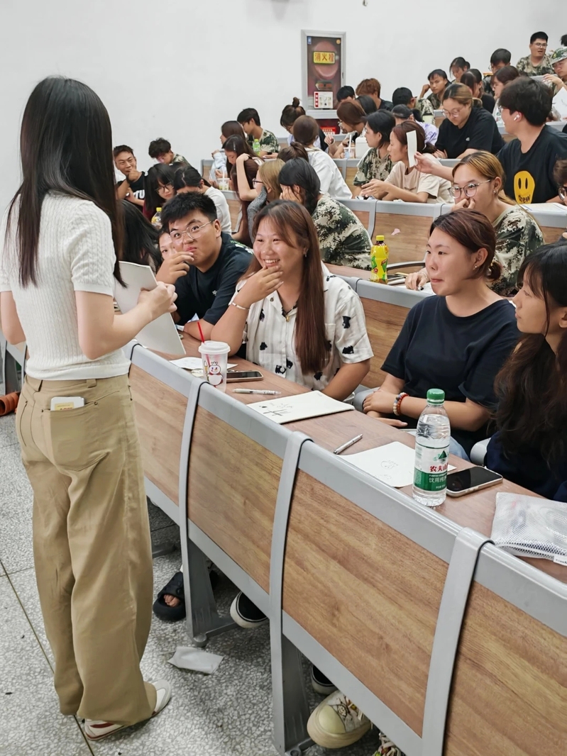 活动伊始,辅导员宋老师首先肯定和赞扬了同学们在军训中展现的坚韧精神,并引出了以艺术促交流的活动主旨。随后,通过高效的“数字分组”游戏,全场110余名新生在几分钟内被随机重组为多个互动小组,打破了班级间的隔阂,为深度交流奠定了良好基础。