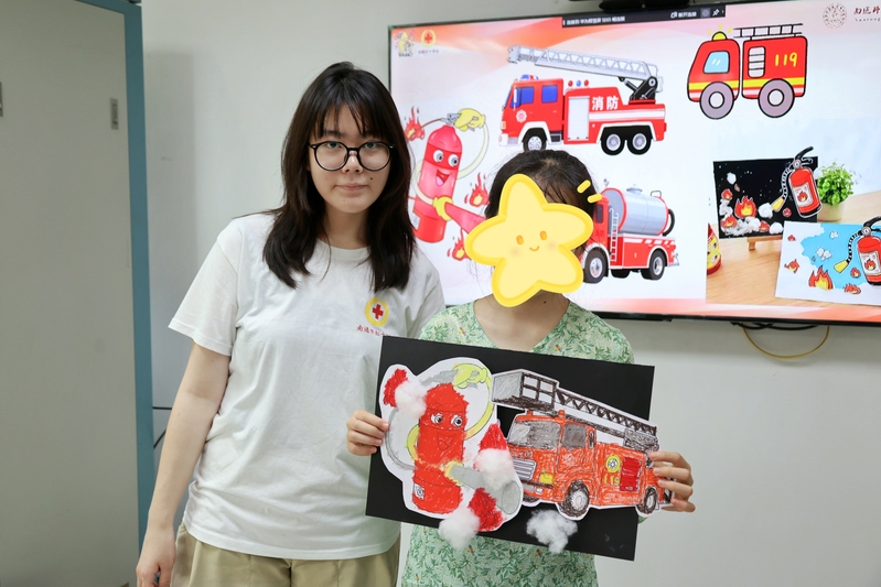 最暖心的是,孩子们还细心地为作品添加细节——有的粘上白色棉花做“烟雾”,有的用亮片装饰“车灯”。当孩子们高举作品合影时,消防站内回荡着欢快的笑声。这场融合科普与艺术的活动,不仅让星星的孩子们掌握了实用的安全技能,更用色彩打开了他们与世界对话的窗口。