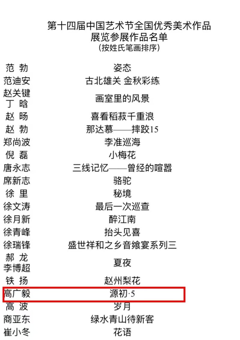 近日,由文化和旅游部、重庆市人民政府、四川省人民政府、中国美术家协会共同主办的第十四届中国艺术节隆重开幕。公司教师、南通市美术家协会会员高广毅的油画作品 《源初·5》 ,经层层遴选,成功入选第十四届中国艺术节全国优秀美术作品展览。