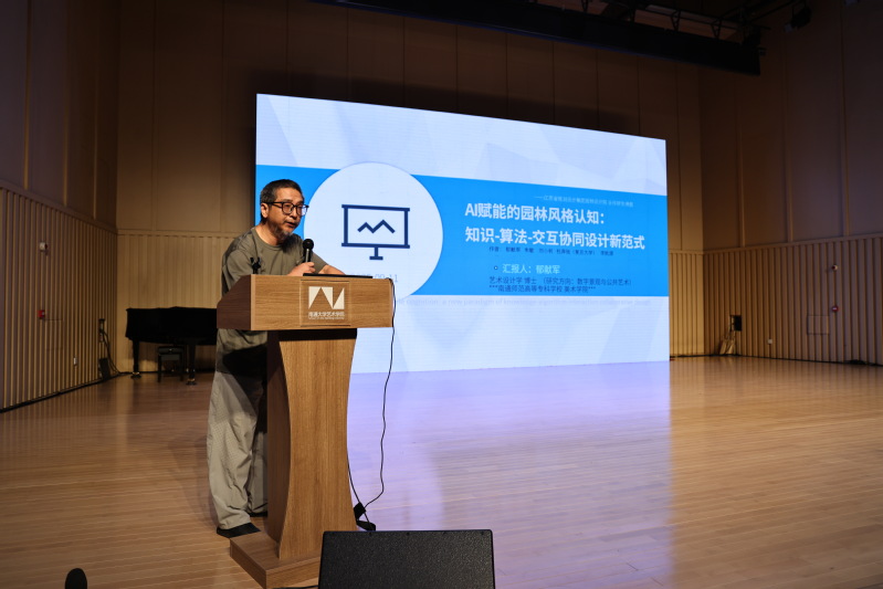 研讨会期间,郁献军博士应主办方邀请,作为优秀论文作者代表之一进行大会交流发言。他以《AI赋能的园林风格认知:知识-算法-交互协同设计新范式》为题,精彩分享了对人工智能如何深度解析与重构园林风格的系统性研究,提出了“知识图谱构建—算法生成设计—多模态交互验证”的协同创新框架,引发了现场专家学者的热烈反响与广泛关注。