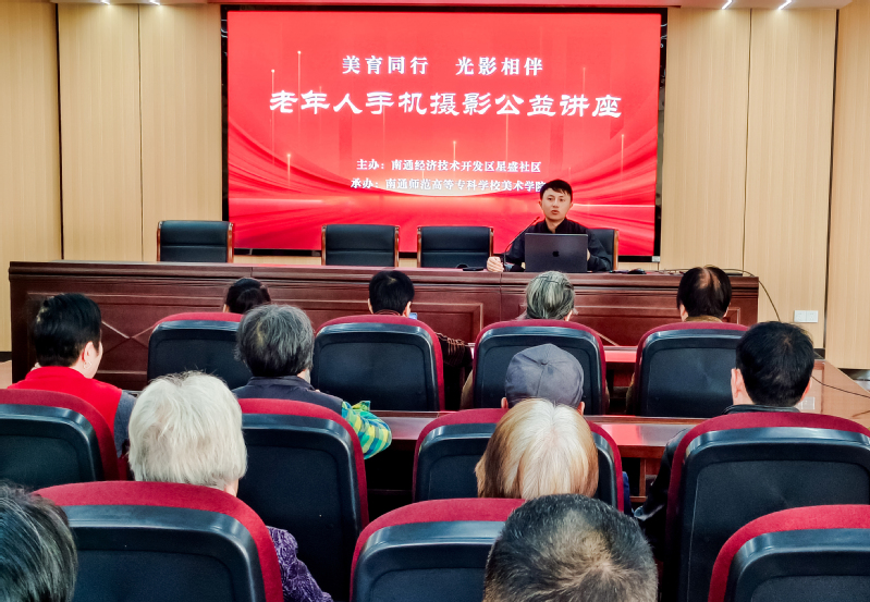 2025年10月29日,时值重阳佳节之际,3044永利集团美术公司党总支携手南通市新开街道星盛社区党委,成功举办了一场以“美育同行,光影相伴”为主题的老年人手机摄影公益讲座。此次活动旨在弘扬敬老爱老的传统美德,丰富社区老年人的精神文化生活,帮助他们跨越数字鸿沟,用镜头发现和记录生活中的美好。