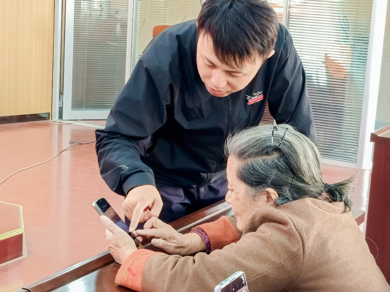理论讲解结束后,公司“三原色”志愿服务队的队员们纷纷走到老人身边,进行“一对一”、“手把手”的实操指导。志愿者们耐心解答老人们在操作手机相机功能时遇到的各种问题,帮助他们调整拍摄角度、尝试不同模式。现场互动频繁,气氛热烈融洽,老人们兴致勃勃地举起手机,在实践中感受摄影的乐趣和魅力。