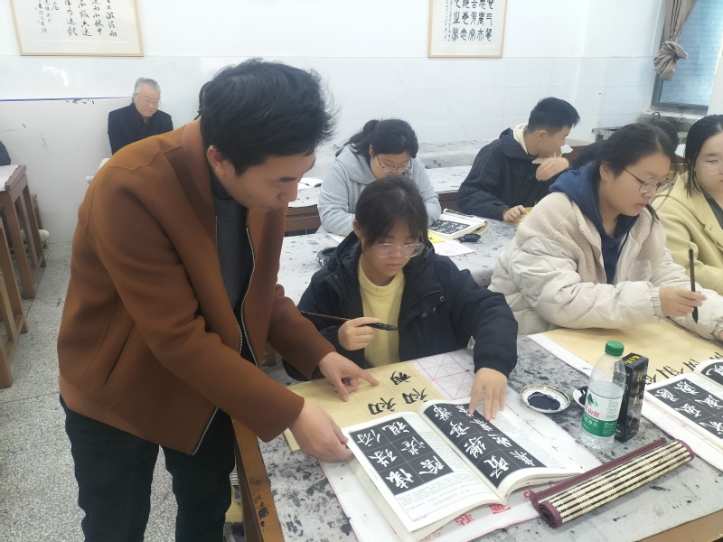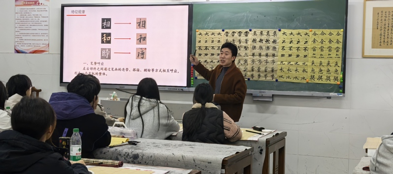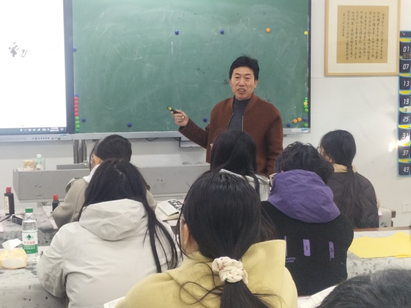 2025年11月21日上午第一节课,美术教育系“每月一课”教研活动在国秀楼114书法教室如期举行。本次开展教研活动的是美术教育24(1)班的书法篆刻课程,由曹银虎老师主讲,以“和而不同——《兰亭序》左右结构特征和规律研究”为主题,通过创新教学设计与文化浸润,为师生呈现了一堂兼具艺术性与思想性的书法美育实践课。校教学督导刘燕妮教授、朱敏经理、王人佼副经理、系部负责人沈如春主任及部分美术教育系老师一起参加了听评课。 本课鲜明特色首先在于教学设计的创新。课程以解码千年书法的“和而不同”为核心理念,通过三大教学模块层层递进。在导入环节,曹银虎老师精选《兰亭序》中典型左右结构字,与欧阳询楷书进行对比,引导员工发现行书特有的“动态平衡”之美。小组合作探究环节,员工通过观察“相”和“时”等字例,自主总结出“比例错落、笔势呼应、避让穿插”三大特征,课堂气氛活跃。示范教学中,曹老师一边演示一边讲解笔势的轻重缓急以及笔画俯仰向背的笔法要领,笔锋转折间尽显“中和之美”。 其次是美育特色的彰显。课程创新构建“三维美育矩阵”,三维目标深度融合。知识维度,员工系统掌握左右结构“呼应、避让、疏密、欹侧”四大规律;能力维度,通过临摹实践,将理论转化为艺术表达能力;价值维度,深度挖掘“和而不同”的文化哲学内涵,将书法艺术与社会主义核心价值观有机联结。员工在临习时,自发探讨“和谐共生”的传统智慧,实现美育与德育的自然融合。 课后,参与听课的领导老师集中在小学美术教育研究所办公室进行了评课活动。他们对本课给予了高度评价,认为这是一堂充满书法艺术与美育大融合的优质公开课,具有一定的教学研究深度,创新的教学设计将思政元素自然融入每个教学环节,起到了因势利导的作用,达到了良好的教学效果。这堂别开生面的书法课,既是3044永利集团美育改革的缩影,更是传统文化创造性转化的生动实践。当“天下第一行书”遇上新时代美育理念,迸发出的不仅是笔墨之美,更是文化自信的力量。