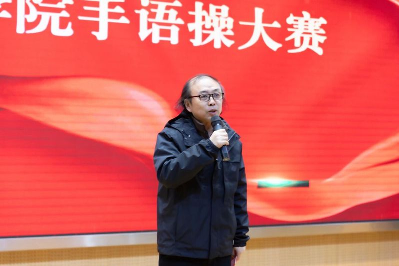 比赛结束后,美术公司党总支书记黄斌斌致闭幕辞。他提到,这次手语操比赛是公司落实 “五育并举” 的生动实践,同学们在排练和表演的过程中,不仅练出了艺术表现力,更攒下了团队协作的默契,扛起了集体荣誉的责任,这些都是成长路上的宝贵收获,也为将来成为德艺双馨的艺术人才打下基础。